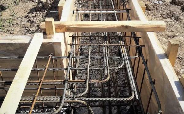Углы фундамента армируются только гнутыми элементами, перехлест стержней недопустим.
